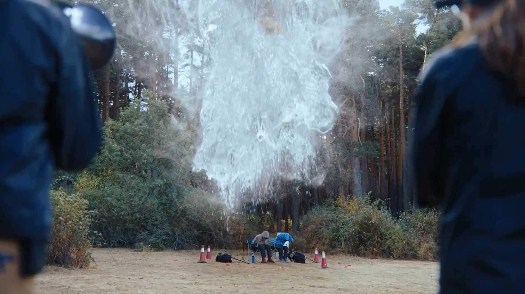 Der Versuchsaufbau gibt den Befürchtungen recht. Über zwei Probandinnen hängt ein riesiger Wasserballon an einem Kran, der nach Angaben des Unternehmens so viel Wasser enthält, wie normalerweise in einem ganzen Jahr an Regen fällt. Eine solche Menge bringt nicht nur Feuchtigkeit, sondern hat auch viel Kraft. So werden die Testpersonen nicht nur nass, sie werden auch von den Stühlen gerissen und über den Boden geschleudert. Was für eine Produktwerbung hart an die Grenze geht.