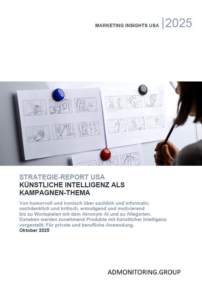 Um einen wertvollen Wettbewerbsvorsprung bei diesem wichtigen Zukunftsthema zu bieten, haben wir frühzeitig einen aufschlussreichen Querschnitt durch die ersten Kampagnen für AI-Produkte zusammengestellt. Der Strategie-Report USA zeigt die Probleme und Risiken dieses kontroversen Themas, daneben aber auch vorbildliche Lösungen mit mutigen, überraschenden und ungewöhnlichen Umsetzungen. Ein lohnender Blick auf alles, was über diese neue Marketing-Kategorie wichtig und wissenswert ist.