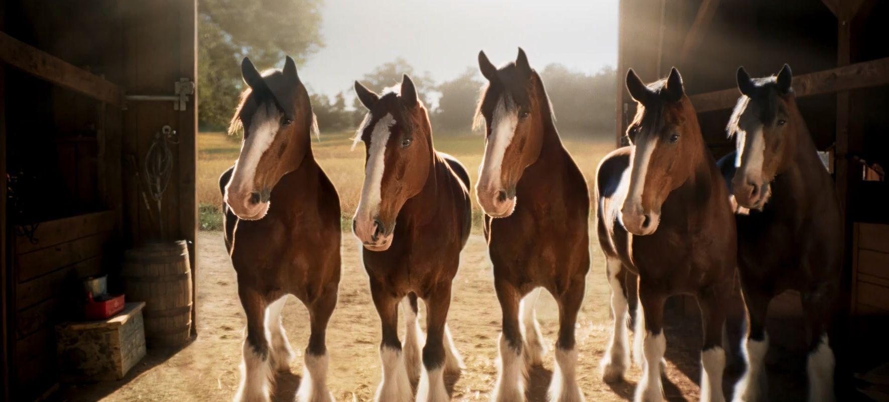 Die kräftigen Clydesdales-Pferde sind 1975 zum ersten Mal in einem Super Bowl Spot aufgetreten und haben seitdem 47 erfolgreiche Auftritte absolviert. Zusammen mit den roten Bierkutschen werden sie seit dem Ende der Prohibition untrennbar mit dem "Great American Lager" verbunden. Was in der angespannten Stimmung im Land besonders wichtig ist: Bei den bewährten Markenbotschaftern besteht keine Gefahr, irgendeine Bevölkerungsgruppe zu verärgern. Sie sind neutral, sympathisch und in ihnen und der Tradition der Bierkutschen können sich die meisten Menschen wiederfinden. Deshalb wurden sie unter anderem in einem legendären Spot beim Super Bowl 2002 eingesetzt, in dem ein Gespann nach New York gefahren ist und sich die Pferde als Respekt vor den Opfern des 11. Septembers vor der Skyline von Manhattan verbeugt haben. Die Besonderheit dieses Spots: Er wurde nur in dieser Form ein einziges Mal gesendet.