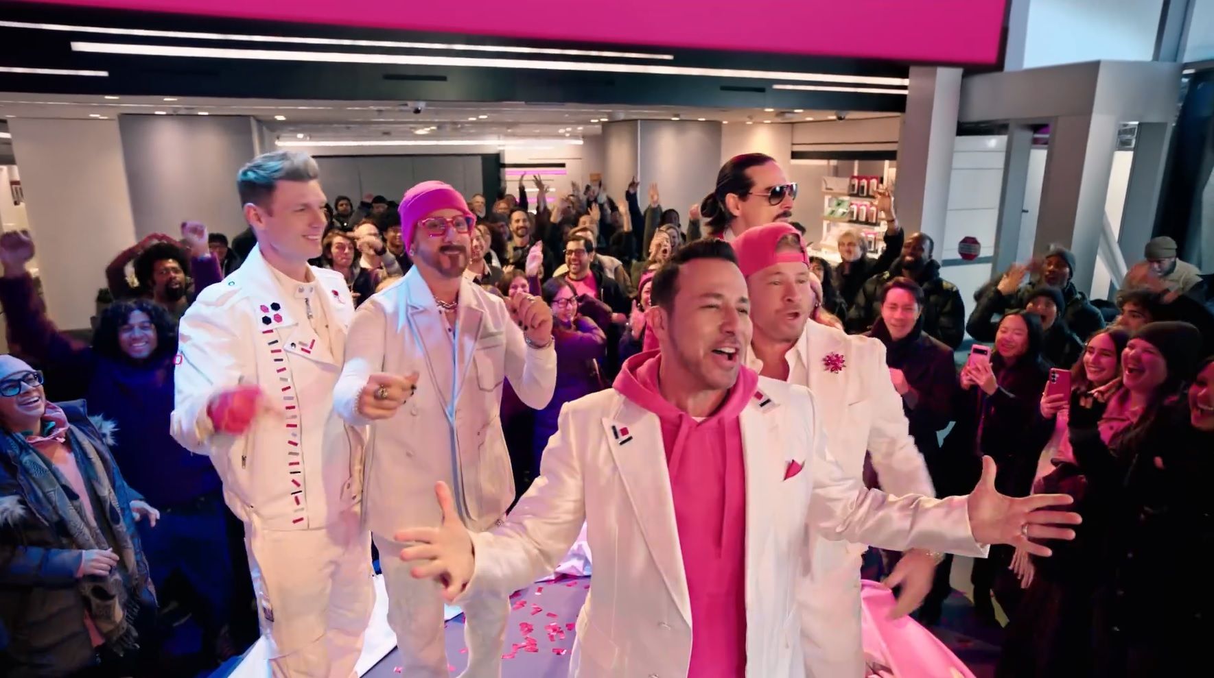 Die Backstreet Boys geben für T-Mobile Kunden ein Ständchen. Mehr Handlung braucht es nicht.