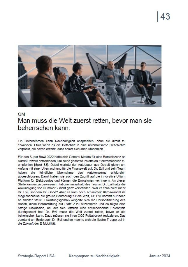 In Kampagnen lässt sich das auf sehr unterschiedliche Art umsetzen. Unternehmen können ganz allgemein deutlich machen, dass sie die Herausforderung erkannt haben und dass sie sich der Aufgabe stellen. Überzeugender ist sicherlich, neben dieser grundsätzlichen Haltung konkrete Aktivitäten zu zeigen oder Ziele zu formulieren. Was haben wir bisher unternommen, was haben wir vor und bis wann. Was einfach klingt, lässt sich manchmal nur schwer in 30 oder 60 Sekunden vermitteln. Aber es gibt immer mehr sehenswerte Ideen, wie man komplexe Bemühungen nachvollziehbar auf den Punkt bringen kann.
