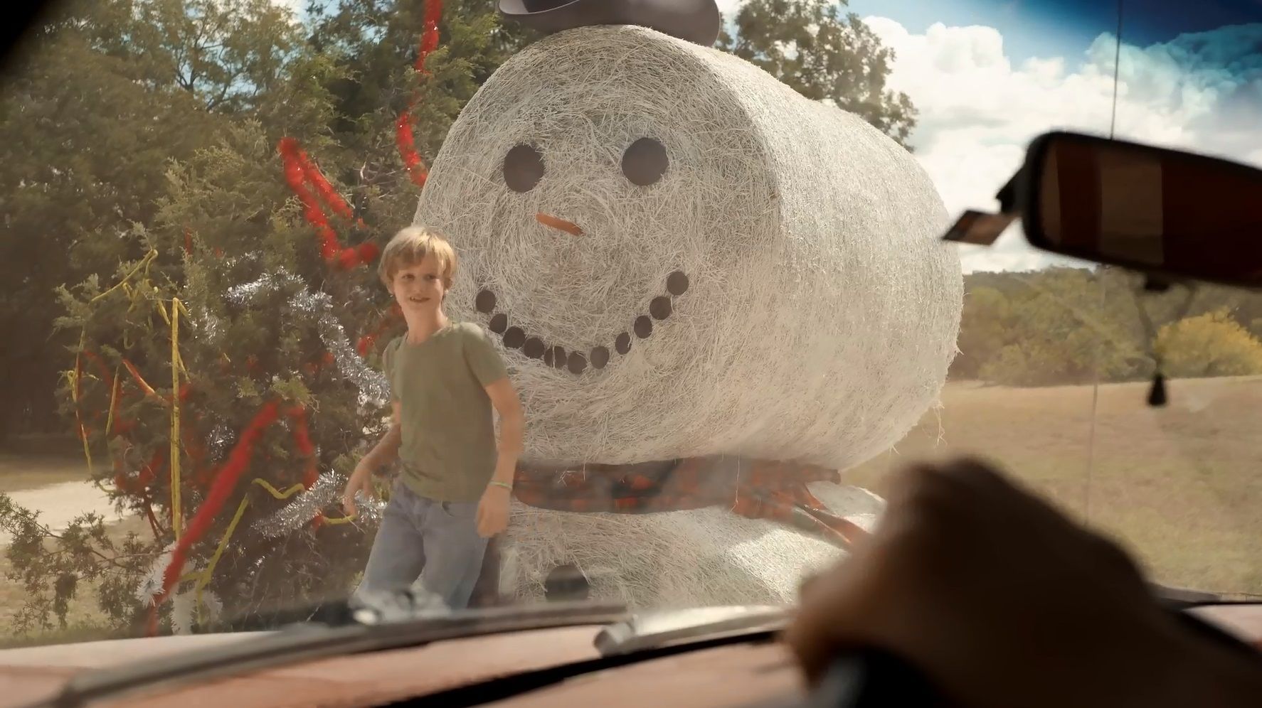 Wenn es aufgrund der geografischen Lage keinen Schnee gibt, muss man sich etwas einfallen lassen. Zum Beispiel eine Alternative zum traditionellen Schneemann. Bei der natürlich auch die Möhre als Nase nicht fehlen darf. Natürlich muss auch der Soundtrack heimatlich sein, in diesem Fall steuert ihn Country-Sänger George Strait mit seiner Hymne "When It's Christmas Time in Texas" aus dem Jahr 1986 bei. Der Musiker ist 2022 in einem regional geschalteten Super Bowl Spot von H-E-B persönlich aufgetreten.